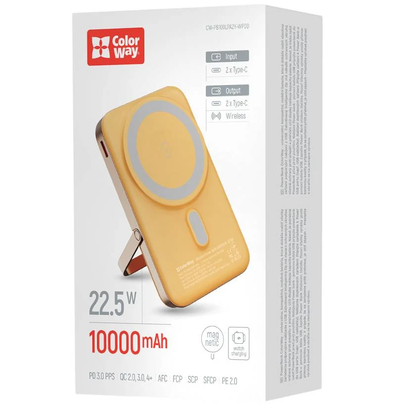 Внешний аккумулятор (павербанк) ColorWay 10000mAh 22.5W MagSafe Amber (CW-PB100LPA2Y-WPDD)