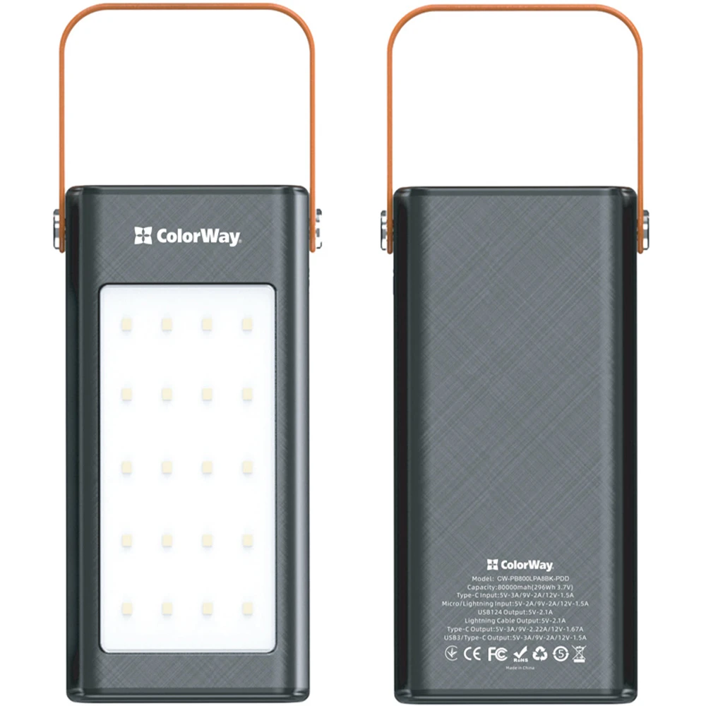 Внешний аккумулятор (павербанк) ColorWay 80000mAh 22.5W Black (CW-PB800LPA8BK-PDD)