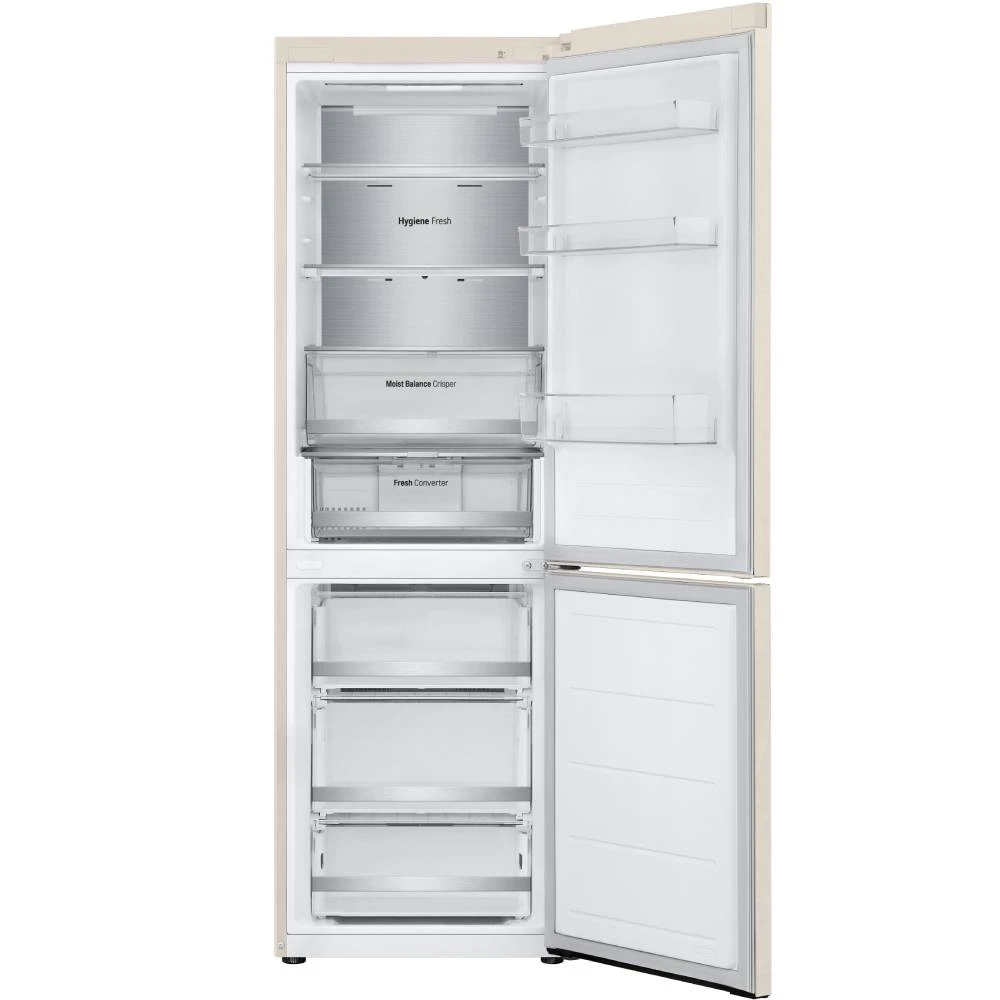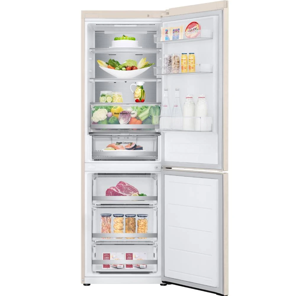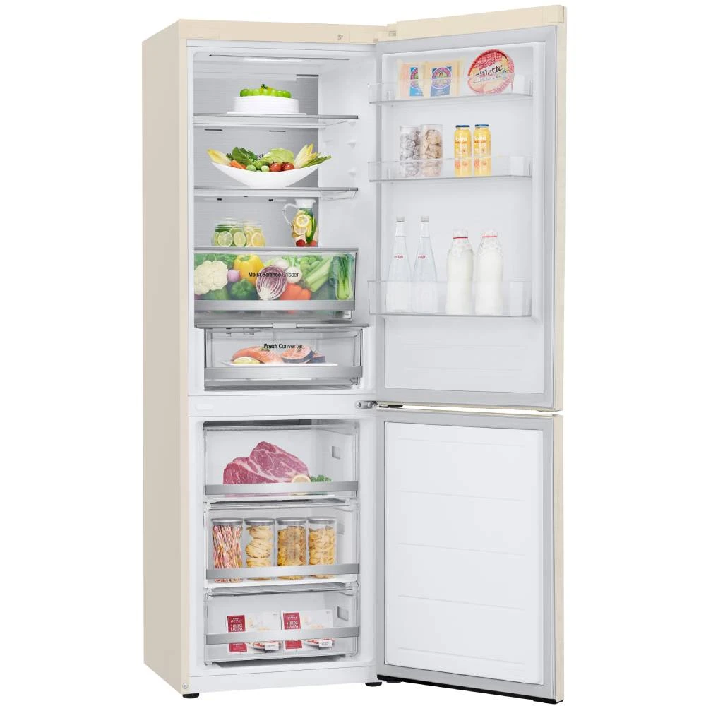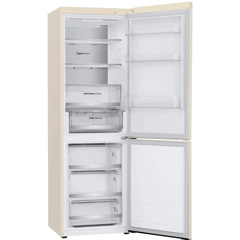 Металлическая пластина на задней стенке служит дополнительным источником охлаждения. Технология DoorCooling +: вентиляционные отверстия на передней панели холодильника помогают поддерживать нужную температуру, чтобы продукты оставались свежими. Усовершенствованная складная полка теперь имеет два этапа сложения. В рамках технологии Hygiene Fresh+ от LG используется 5-этапный фильтр, устраняющий большинство причин порчи еды: пыль, грибковые споры, кислый, щелочной запах и бактерии.