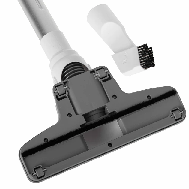 Оснащен четырьмя резиновыми колесами, гарантирующими легкое использование, не утомляющее запястье, Энергетический класс: A+, Класс фильтрации: A, Класс эффективности пылесоса твердых полов: A, Максимальная сила всасывания: 14 000 Па, Максимальный поток воздуха: 15,6 л/с 15 мкм, Фильтры можно мыть, сушить и снова устанавливать.