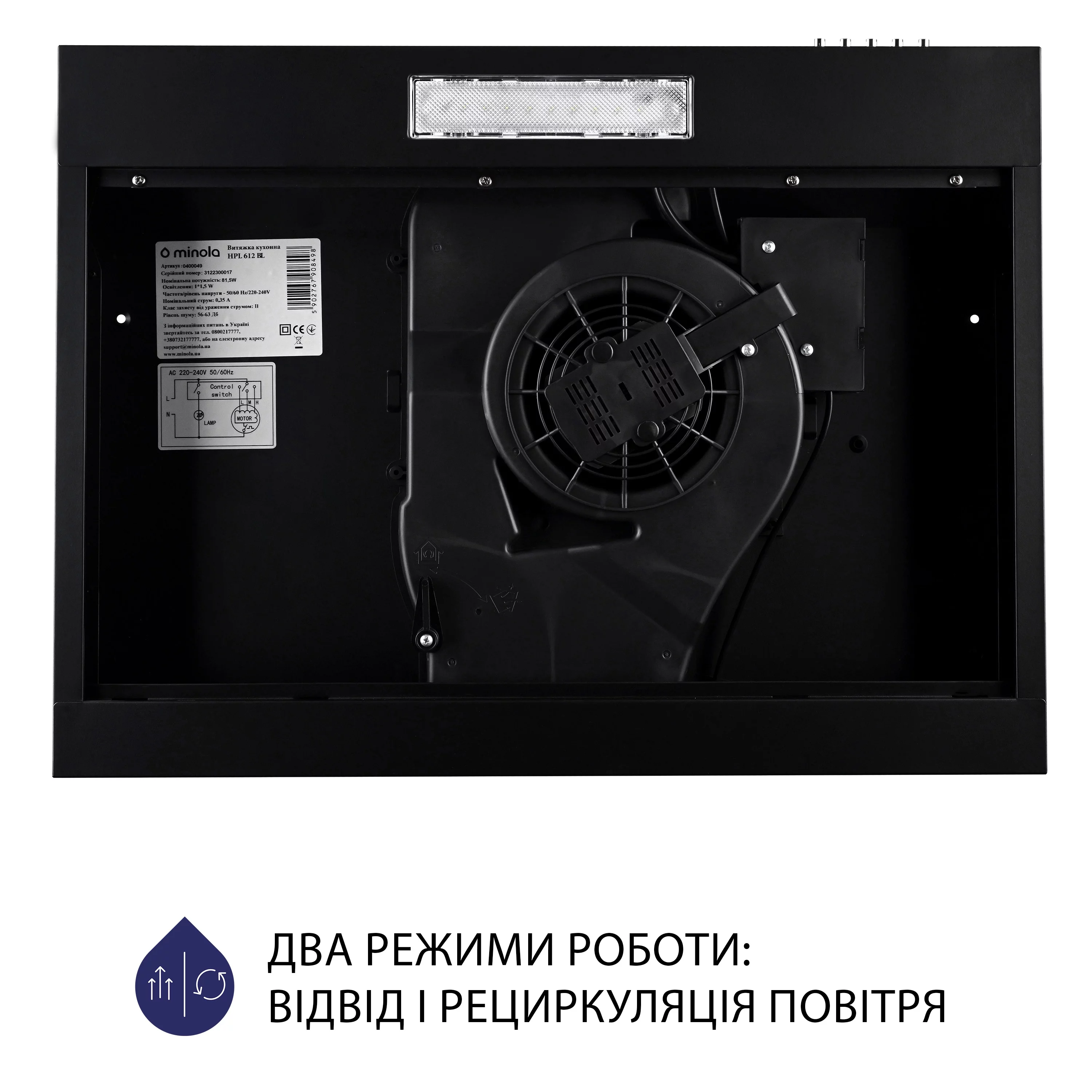 Вытяжка плоская Minola HPL 612 BL