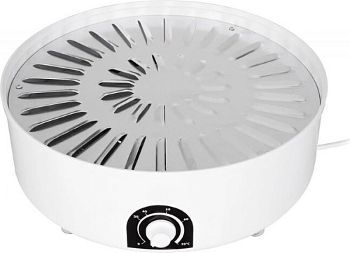 Диаметр поддона 38 см. Высота поддона 47 мм. Количество температурных режимов 5. Расположение вентилятора нижнее. Количество поддонов: 6 стандартных лотков, 2 сита для сушки трав.
