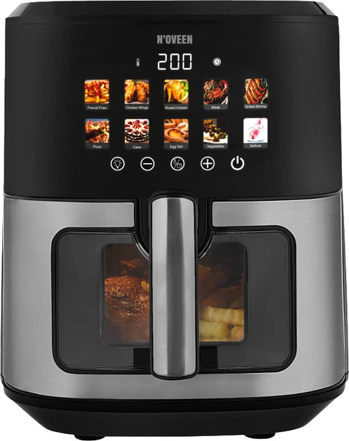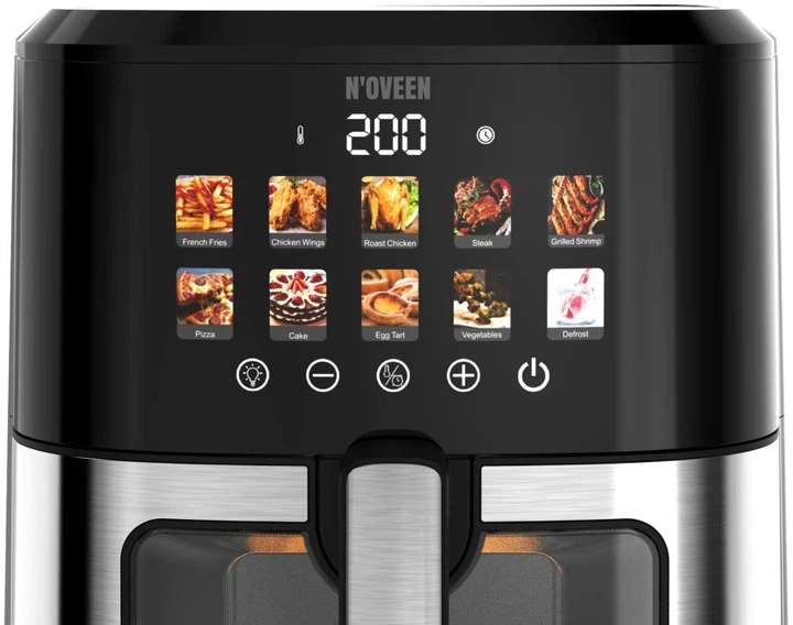 10 автоматических программ: Картофель фри, Стейк (мясо), Куриные крылышки, Целая курица, Креветки, Пицца, Овощи, Торты, Яичный тарт, Размораживание.