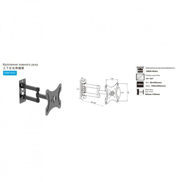 Расстояние от стены 60-430 мм.
