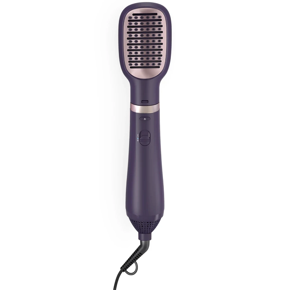 Фен-щетка оснащена керамическими щетинами обогащенными аргановым маслом. 30-мм щетка с выдвижной щетиной для четких волн, 38-мм термощетка для гладких причесок и волн