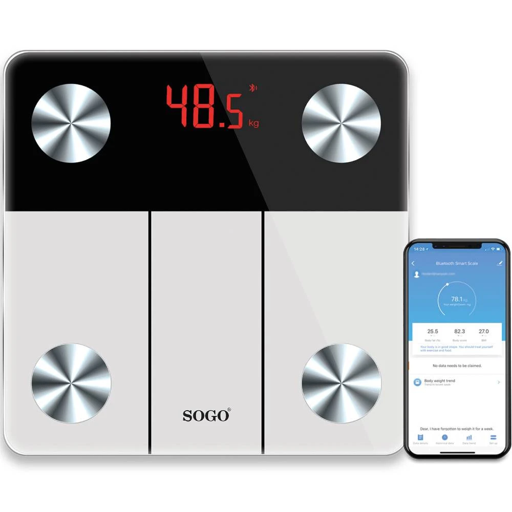Размеры: 280х280х21 мм. Вес: 1,25 кг. LED-экран отображает температуру тела. Индикатор перегрузки и низкого уровня заряда батареи. Единицы измерения: Килограммы, Фунты. Определение содержания воды, мышечной ткани, жировой ткани, костной ткани, расчет индекса массы тела.